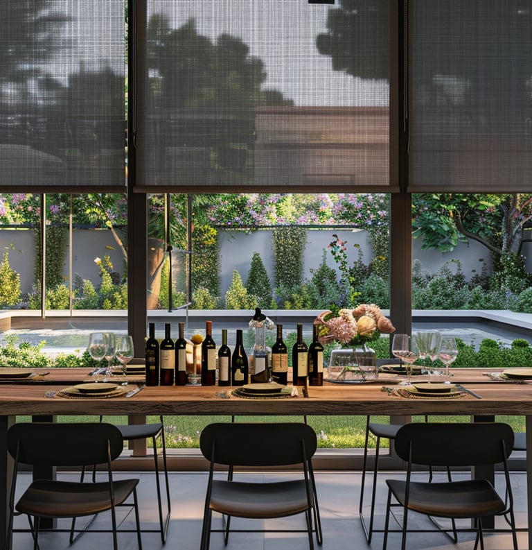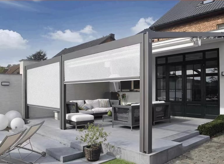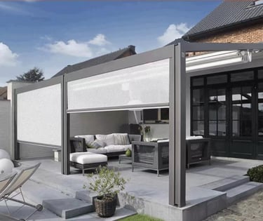 Our range includes classic outdoor blinds, zip screens, executive screens (up to 12 meters wide without breaks), awnings, and both manual and motorized systems. With a variety of colors and fabrics available, we work closely with you to create the perfect sun control solution for your outdoor spaces.